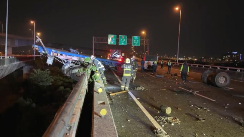 國3霧峰段拖板車撞分隔島 車頭墜橋駕駛當場身亡