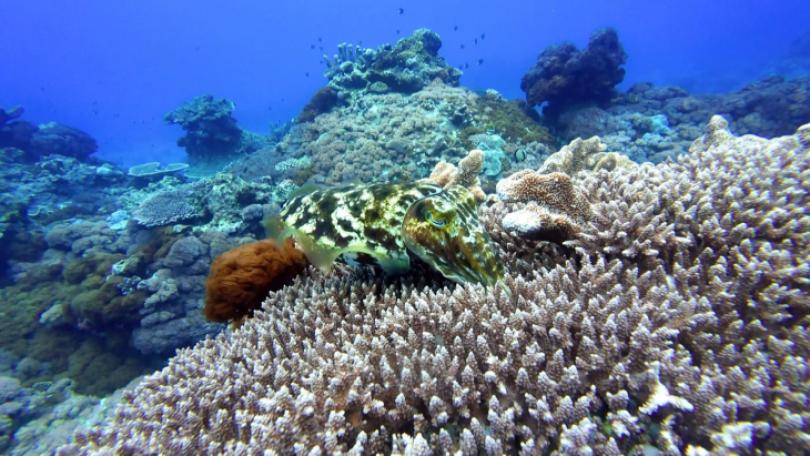 ปะการังไฟที่เกาะลวี่เต่าลดลง กระทบต่อการวางไข่ของหมึกกระดอง