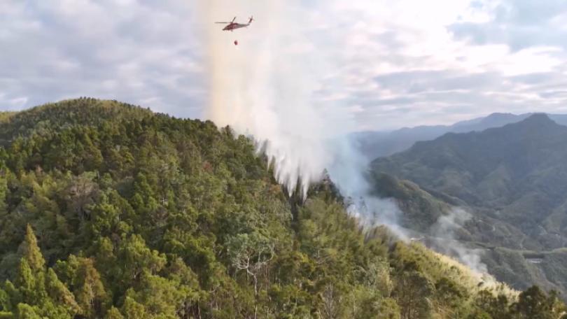 |地方雲林縣古坑鄉草嶺石壁山區,有民眾昨(12)日上午發現山林火災,趕緊通報消防局,但因為山路崎嶇、水源不足,再加已經3個月沒下雨乾燥,火勢延燒超過30小時,警消、義消及村民合力搶救中,消防署、空勤隊也出動直升機協助滅火,目前已延燒8公頃,火警原因還有待調查。