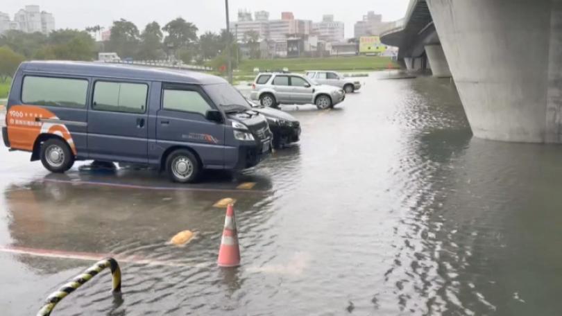 鳳凰撲台宜蘭持續豪雨 宜蘭河橋下停車場積淹水