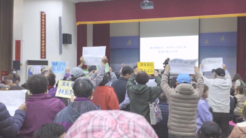 |地方台電在高雄永安的興達電廠燃氣機組,9月9日因為試運轉發生爆炸意外,造成鄰近的社區有約50多戶民宅,家中出現裂縫等屋損,居民抱怨台電不僅爆炸當下沒通知撤離,事後善後也不積極,因此今(1)日到行政院南部服務中心陳抗。