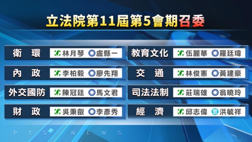 立法院召委選舉結果出爐 綠8席、藍7席、白1席