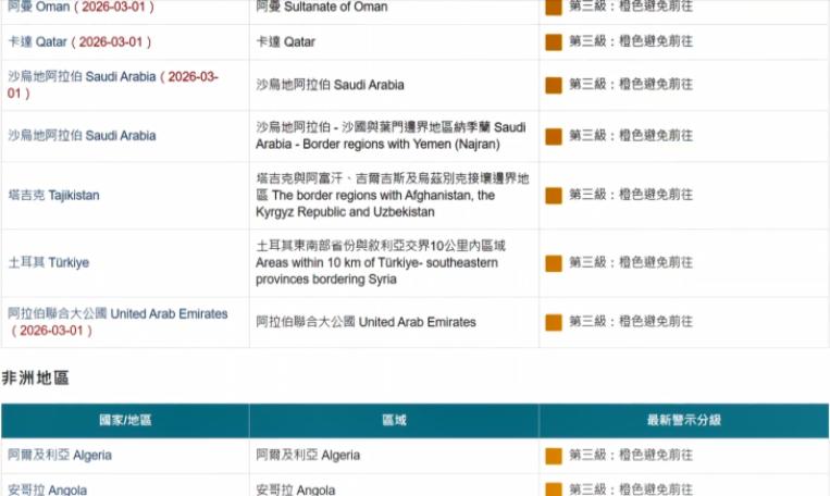 旅遊警示提升到第三級 阿曼等6國"暫時莫去"