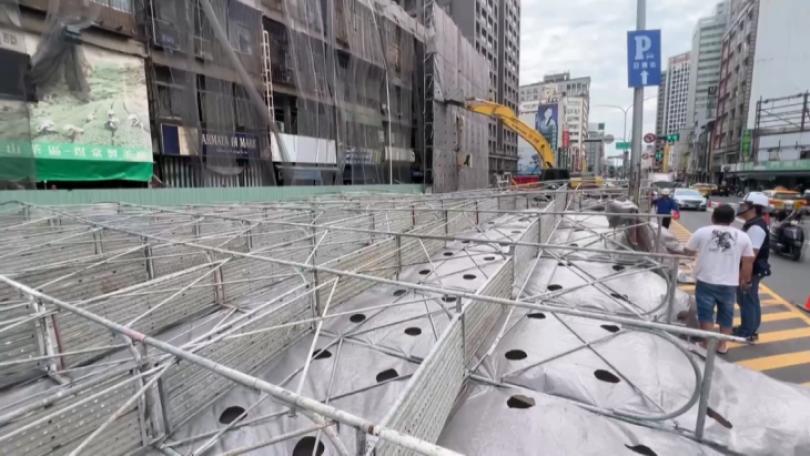 台中刮強陣風 中央市場鷹架倒塌釀騎士受傷