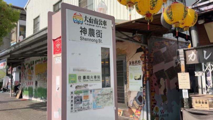 台南神農街站牌無公車停靠 交通局:供包車雙層巴士使用