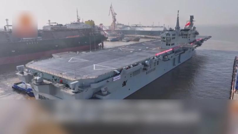 |兩岸中共持續軍事擴張,打造第1艘076型、兩棲突擊艦「四川號」,具備大型開放式飛行甲板,進行電磁彈射,起降無人機、戰機,被稱為「小航艦」,中國官媒央視昨(14)日公開「四川號」,首度執行海上測試。國軍評估,它的威脅更甚於傳統航艦,學者建議,國軍應加強運用反艦飛彈、水雷,反制共艦威脅。