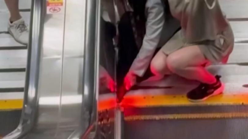 長裙絞入電樓梯 旅客揤緊急鈴險仔害人跋倒