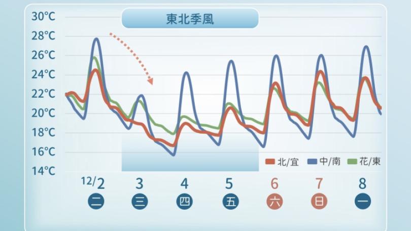 東北季風影響今入夜仍偏冷 週末氣溫回升下週又變天