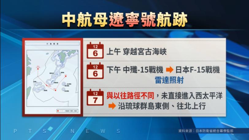 |全球中日再因戰機「雷達照射」事件交鋒,中方指稱,事前已公布「遼寧號」航母編隊訓練海空域,反控是日本戰機擅自闖入;不過日方反駁中方說法,並強調共機間歇性的「雷達照射」相當危險。另外紐西蘭國防部罕見釋出,日前海軍最大軍艦「奧特亞羅瓦號」通過台海相關記錄,除了中共軍艦跟蹤,我國海軍「成功號」巡防艦也相伴護航。