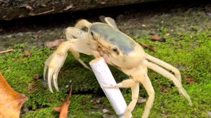 「馬卡道澤蟹」叼菸蒂回洞穴 志工憂棲息地遭破壞