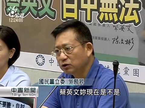 |兩岸選戰進入倒數時刻,藍綠陣營互批的情況不斷。國民黨立院黨團今天指控,民進黨總統參選人蔡英文發放的毛巾文宣品,竟然自封是總統,而且立委參選人陳文彬,竟然和蔡英文聯名,用立院的公文封,發送顧問聘書,而民進團黨則是持續緊咬特偵組偵辦「換柱案」的進度,要求對洪秀柱等人進行測謊。 國民黨立院黨團上午舉行記者會,質疑民進黨總統參選人蔡英文,在立委參選人吳秉叡新莊發送的毛巾文宣品上,竟然自封是總統,還指控民