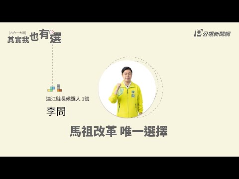 選前倒數一個月,公視新聞網推出《政見說出來,其實我也有選!》,邀請全台22縣市長候選人發表獨家政見,不分大黨小黨還是無黨,一律平等,2分鐘暢所欲言。11月1日起,點選公視新聞網Youtube頻道的 #其實我也有選 播放清單,一起關注2022九合一大選。